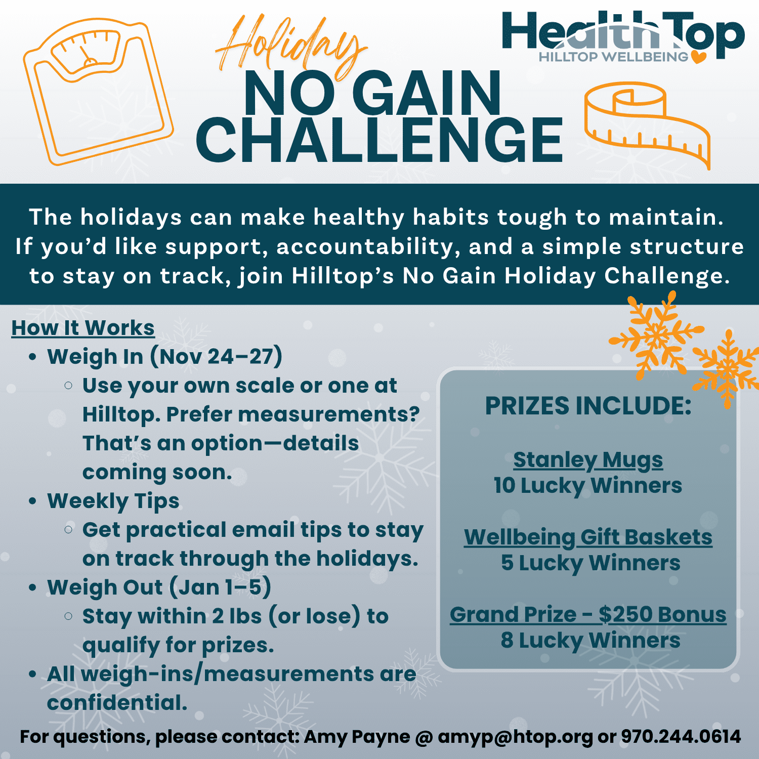• Stay within 2 lbs (or lose) by Jan 5 to qualify for prizes